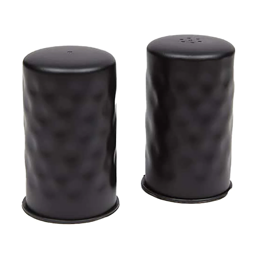 This salt and pepper shaker set from American Metalcraft features a hammered finish and will add a modern look to any table!