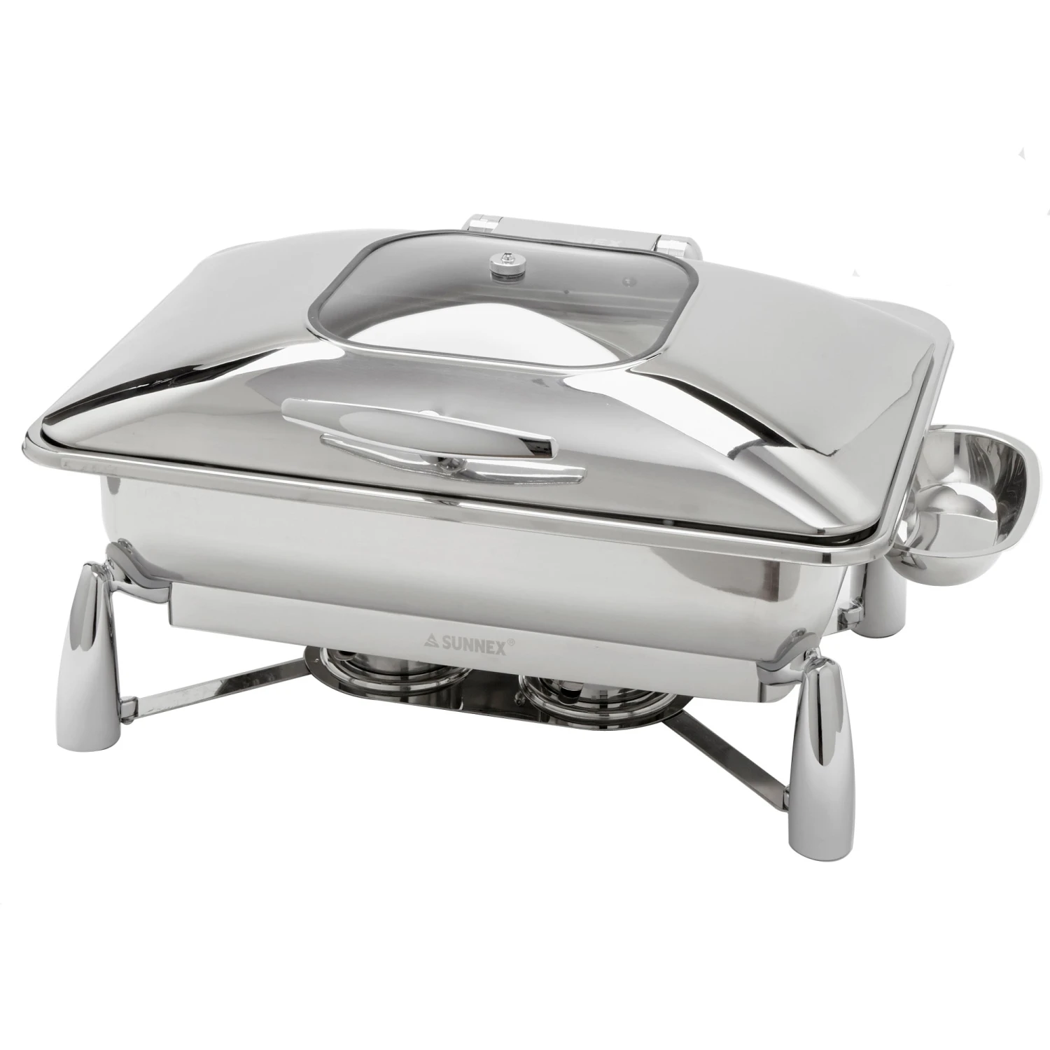 This American Metalcraft chafer has a contemporary design that fits the most upscale buffets. This Evolution chafer features an induction base and comescomplete with a stainless steel spoon holder.
