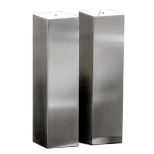 The triangular shape of this salt and pepper shaker set from American Metalcraft add a modern touch to your tabletop.