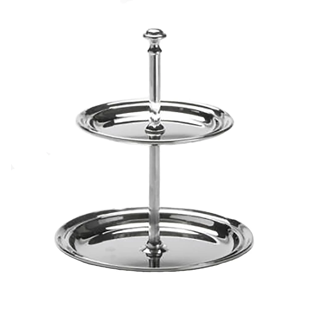 Add an elegant look to your display with this two-tier stainless steel stand from American Metalcraft. Great for buffets or catered events!