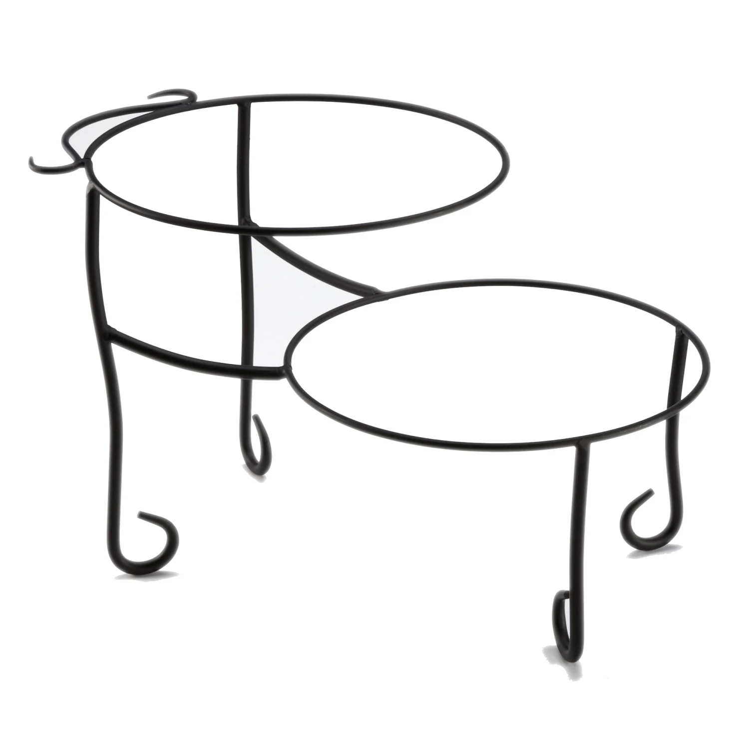 This Ironworksâ„¢ 12″ x 19″ two-tier stand features black, wrought iron construction and curled feet to lend elegance to your tabletop, and its dual platforms allow you hold two plates, bowls or even pizza trays at the same time, doubling your serving capacity.