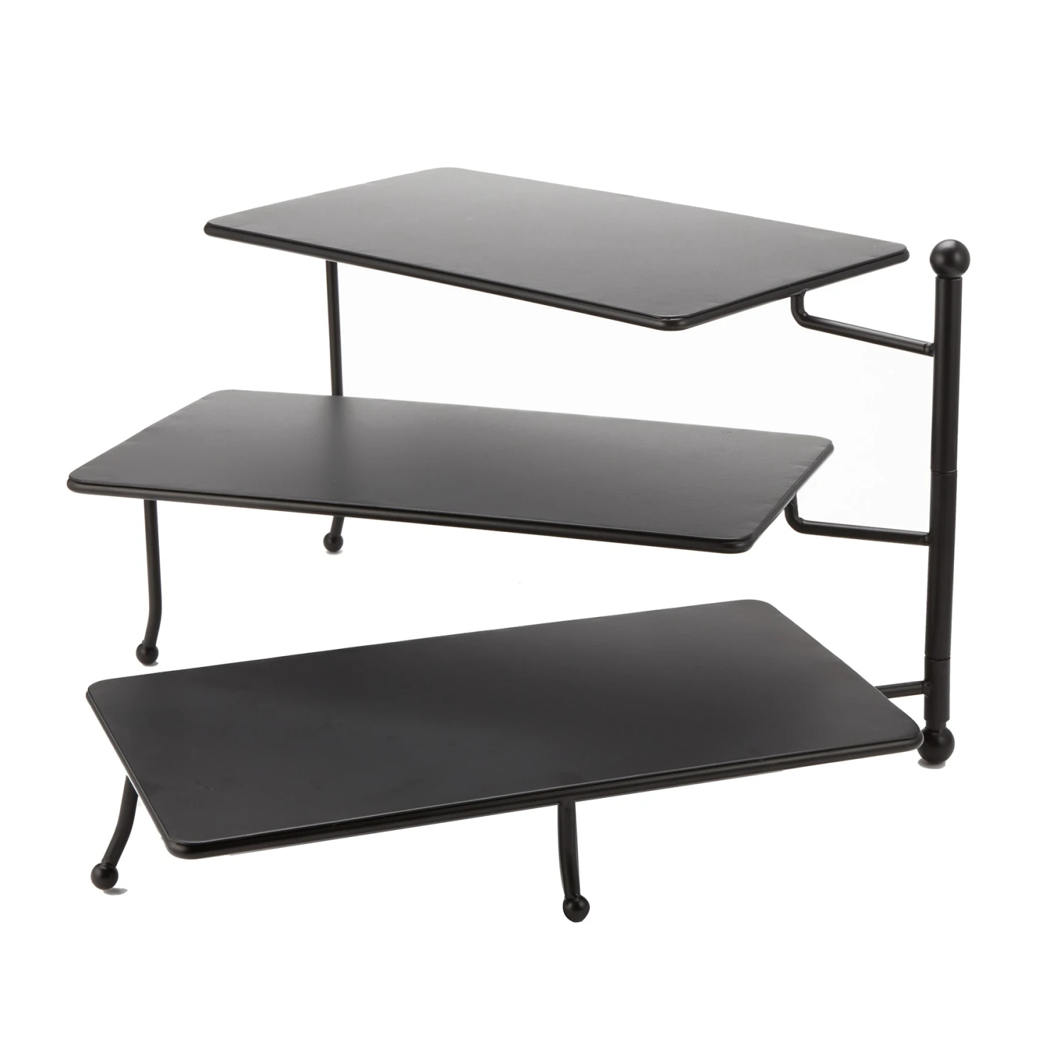 Add style and dimension to your presentation with this 3-tier foldable black riser set from American Metalcraft. Perfect for buffets or catered events!