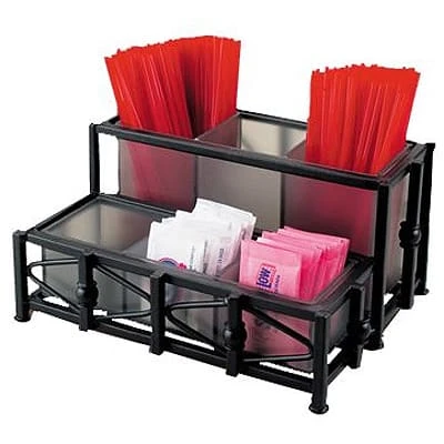 This Cal‐Mil Iron Collection utensil/condiment holder is made from black powder coated iron and has an acrylic liner. It is a decorative and useful way to display utensils.