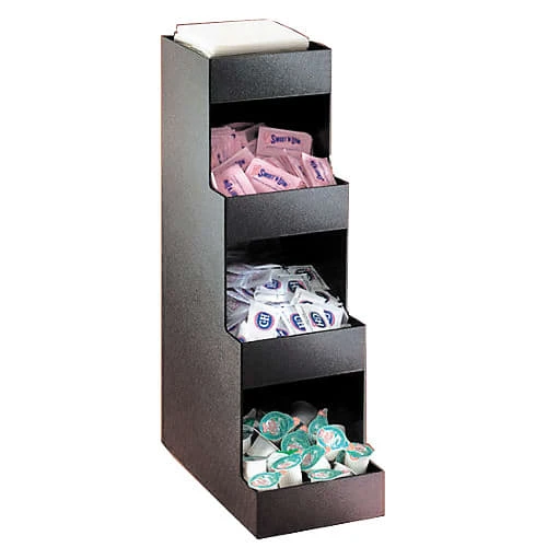 This 4‐tier condiment display from Cal‐Mil is perfect for all of your coffee amenities. It features a black body made from durable ABS material.
