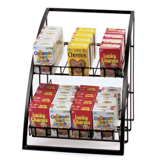 This wire merchandiser from Cal‐Mil features 2 tiers and is perfect for displaying chips, cookies, fruit or other small items. The black wire frame holds two baskets and will help keep your items organized.