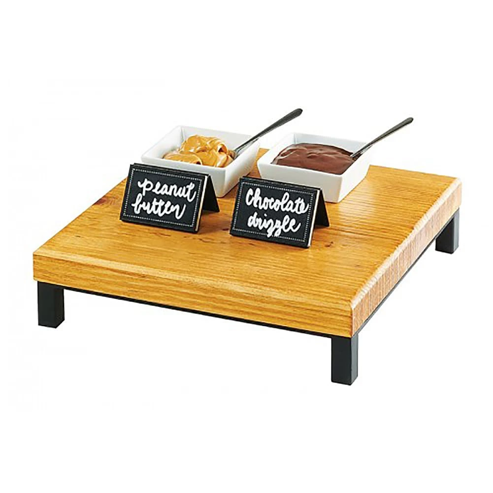 Add dimension and save space with this unique riser. These risers are a great way to freshen up any presentation while keeping table tops organized and clutter free.