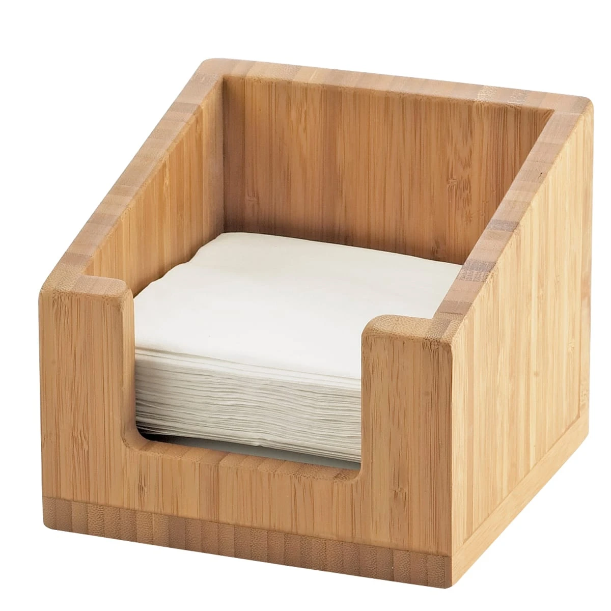 This bamboo napkin holder is perfect for displaying napkins, guest towels, condiments or cutlery. It is an eco‐friendly solution.