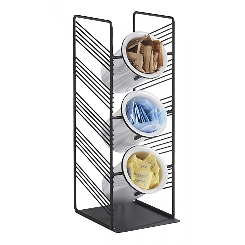 The Portland veritical cylinder display is perfect for housing condiments or flatware. The angled black wire adds rigidity and durability. Cylinders sold separately.