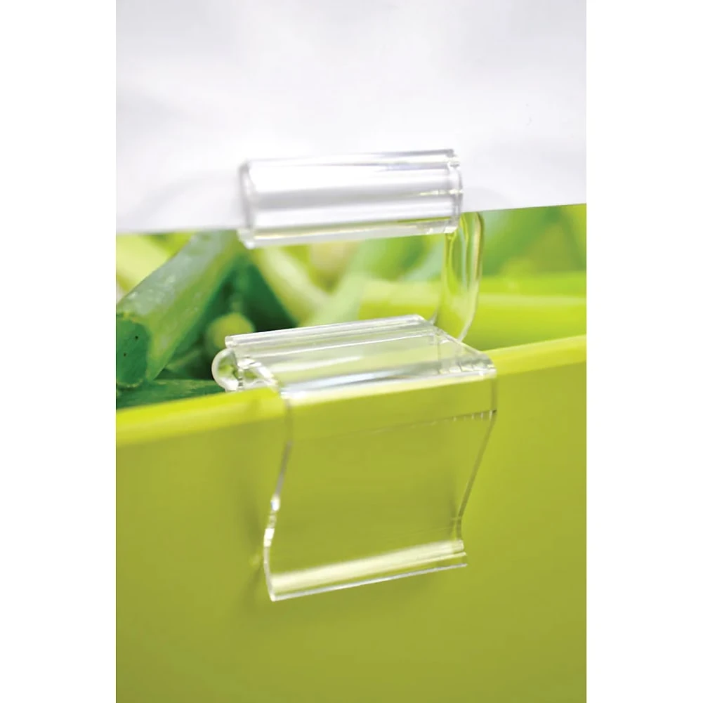 Identify items on shelves, baskets, bowls and more with this horizontal ticket clamp from Dalebrook!