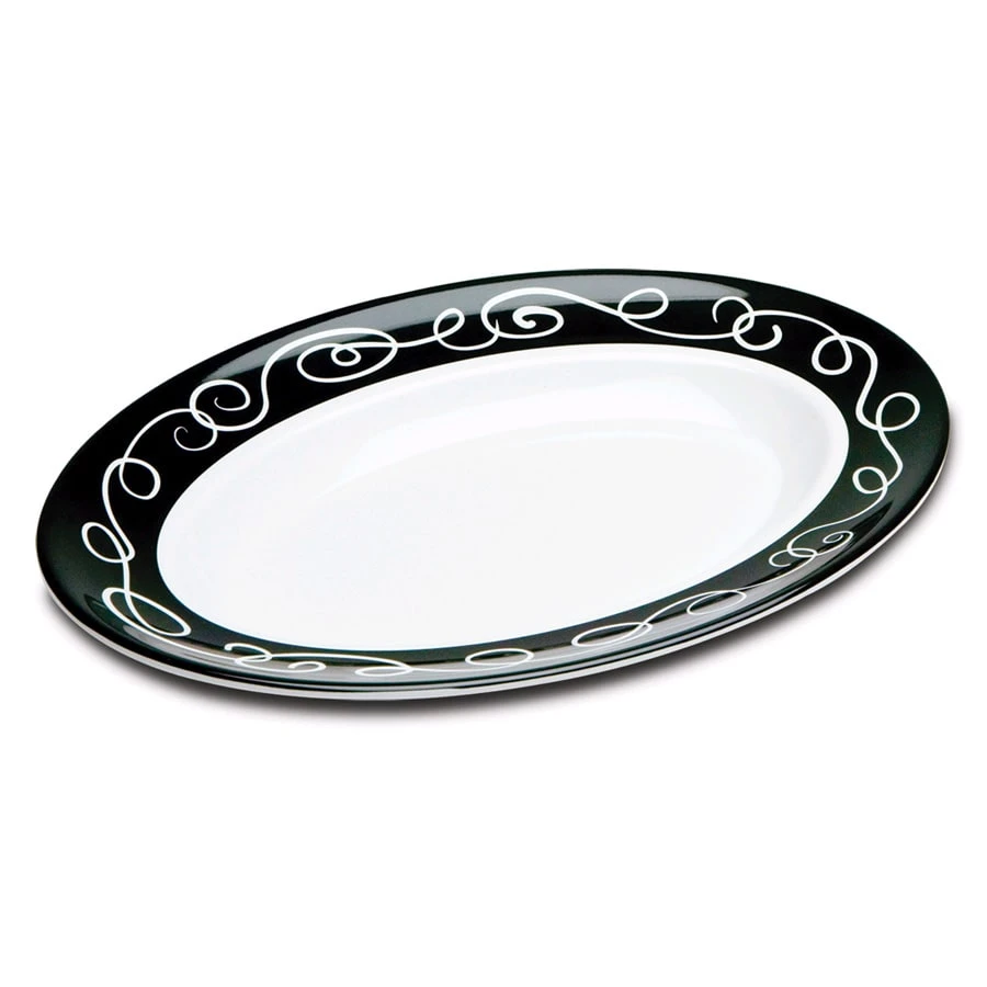 This Delfin Sorrento Bowl has a 3 Qt. capacity and comes in a white color with an attractive free flowing pattern. It is constructed from break-resistant composite melamine, making it ideal for everyday use. This bowl is finished with non-marking white feet.