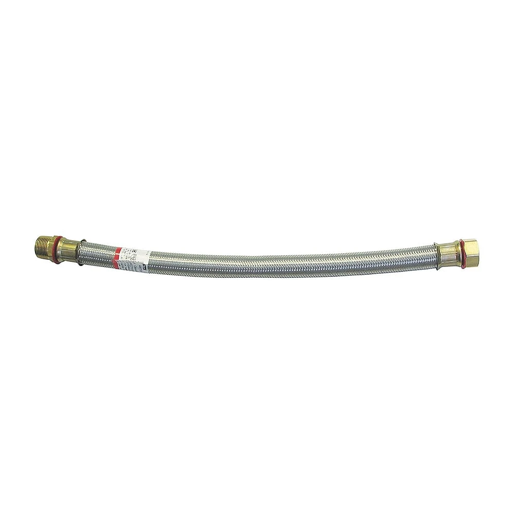 This 3/4 inch ID, 48 inch long high psi water connector is composed of a stainless steel corrugated hose with stainless steel over-braid for added strength. This connector includes brass fittings on both ends for easy connection to all types of foodservice equipment. All of the components are rated for use with hot or cold water.