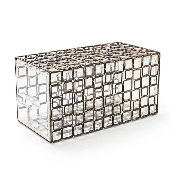 This Front Of The House® Wireware™ Coppered Link Housing includes a drawer and can be used to store foods or flatware, or double as a riser. It is hand-fused and powder-coated.