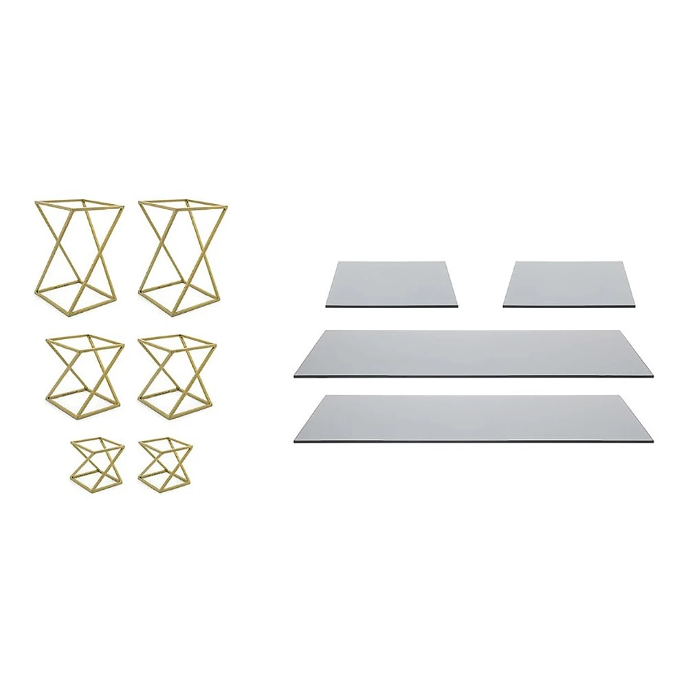 - Set includes 6 risers and 4 pieces of glass