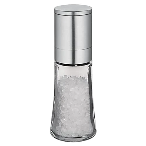 This 5.5″ tall salt mill is adjustable from super fine to coarse and features a stainless steel and glass design. Keeps spices fresh and work area clean!