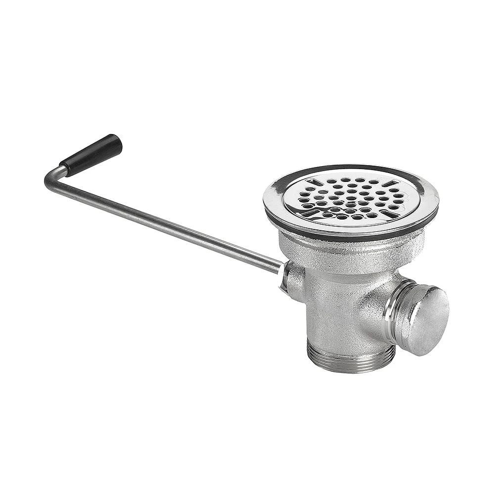 This Krowne® Royal Series twist waste drain has a 3‐1/2″ sink opening and 1‐1/4″ overflow outlet. It features a stainless steel strainer, flange, and handle.