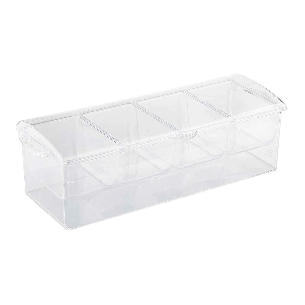Clear, lightweight, BPA-Free plastic designs with ice chamber keep your condiments ready to serve! Includes clear plastic bins which are removable for easy cleaning. Lid keeps your fruits and other garnishes fresh and free from contaminants. Part of the Chiller Collection range of lightweight, economical serving options. Perfect for burger and hotdog condiments as well! Includes (4) 1-1/2 pt Inserts.