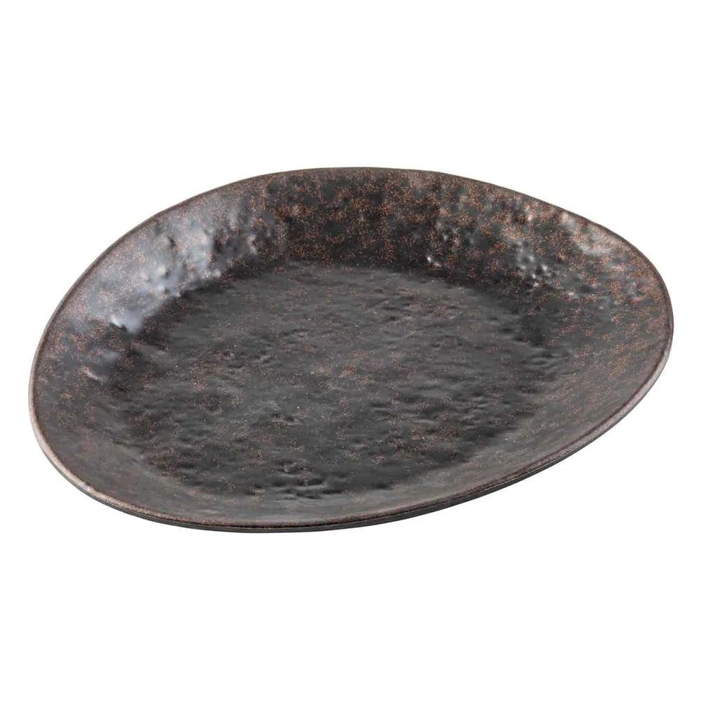 This large, 13.25″ plate feature an irregular rim shape to replicate authentic handmade pieces! The matte brown finish with copper flecks of The Lunara Collectionâ„¢ from TableCraft captures the look of hand-hammered metal for a truly unique serving and tabletop presentation. The wide selection of melamine trays, bowls and plates are durable and dishwasher safe, making them not just beautiful, but long-lasting.