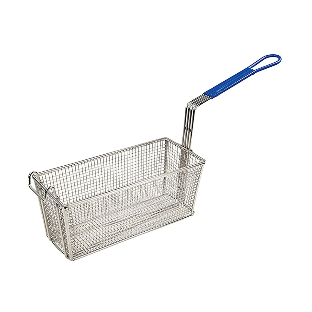 This 13-1/4″ x 5-3/4″ x 5-5/8″ nickel plated fry basket from Winco® features one-piece constuction and the heavy-gauge wire handles are coated with high-temperature-resistant plastic.