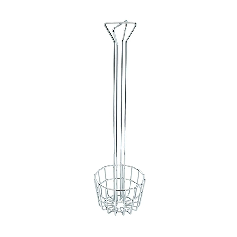 This chrome plated tortilla shell fry basket from Winco® is used by placing the tortilla on the surface of oil in fryer, then push the tortilla into the oil with fry basket.
