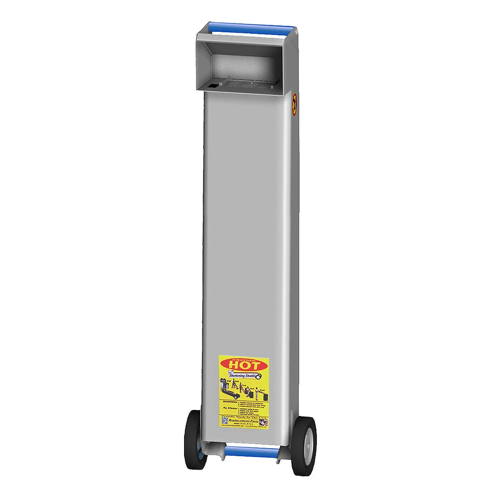 The Economy series Shortening Shuttle® by Worcester Industries is low-cost and easy to use. The thick aluminum double-walled construction helps ensure safety and many years of use. There are four models in the Economy Series that can be used with virtually all fryers on the market. Use this model if the minimum fryer drain height is 8-1/2″ and the waste container height is 40-1/2″ or lower.
